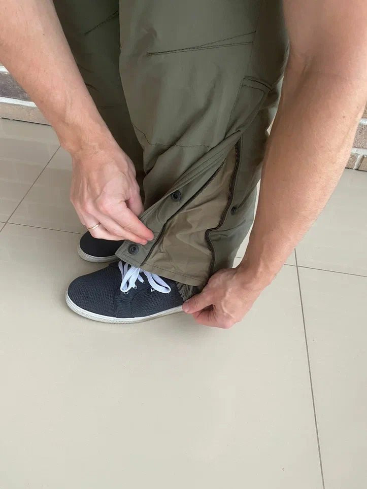 — Расширение в нижней части брючины, на молнии