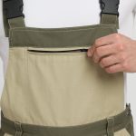 в районе бедра слева накладной карман с объемом, закрывающиеся клапаном с двумя участками ленты контакт, справа карман, застегивающийся на тесьму-«молния»